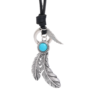 Vintage alaşım tüy kolye kolye deri halat kordon ile moda Trendy Punk turkuaz kazak zinciri etnik tarzı takı