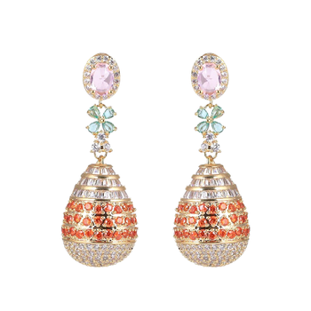 Toptan yeni moda avrupa amerikan kadınlar zarif Retro lüks takı renkli zirkon boncuklu Bling top kolye küpe