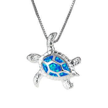 Toptan narin sevimli uzun zincir Rhinestone alaşım gümüş okyanus hayvan figürlü mücevherat Opal mavi deniz kaplumbağası kolye kolye